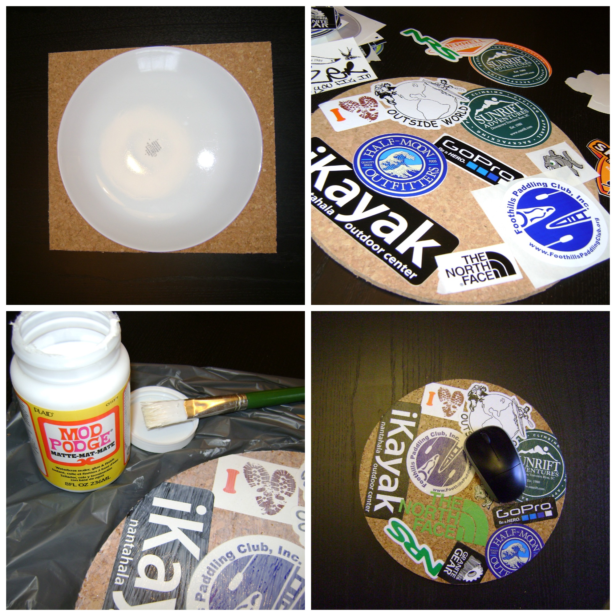 He also liked the one gift that I had completed in time. I made him this snazzy mouse pad using a cork tile, stickers and Mod Podge. Usually he puts these types of stickers on the car but they only last a few months out in the elements before they have to be replaced. I figured this would be a good way prolong the life of the sticker and he would be able to enjoy them everyday.