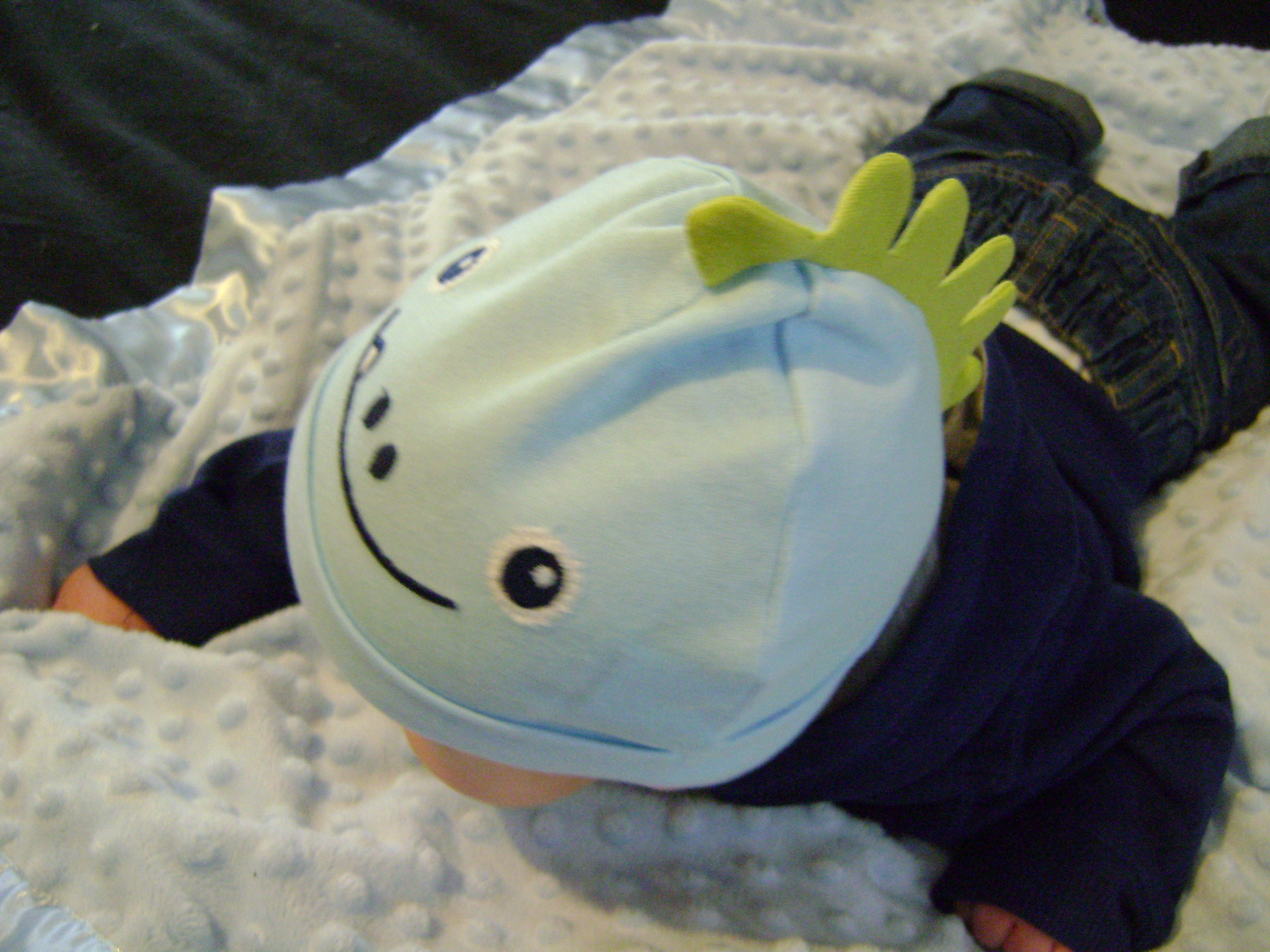 After the rain on Friday it was a little chilly when I headed out to do some grocery shopping on Saturday morning.  I know, 52 is really not chilly at all.  But when you compare it to 75-80 it kind of is.  So, I decided to pop this little dino hat on Henry before going out and about.  Isn’t it so cute!?  It will be a sad day when he gets to be too big and cool for cute little boy things….