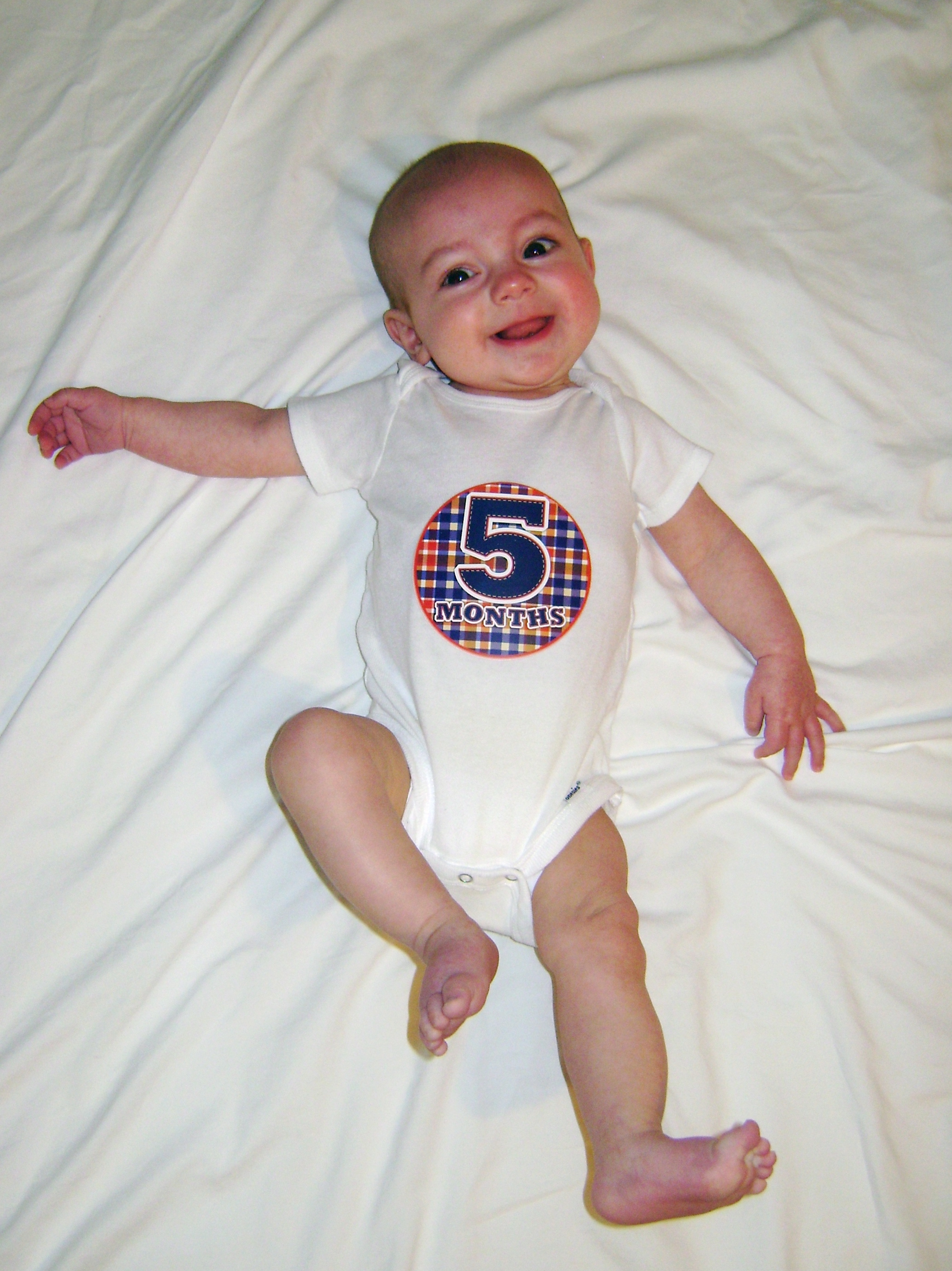 - Didn’t gain much weight this last month (13 lb 6 oz and 26 3/4″ long). You have out grown most of your 0-3 month clothes but are still too skinny for most of your 3-6 month clothes.