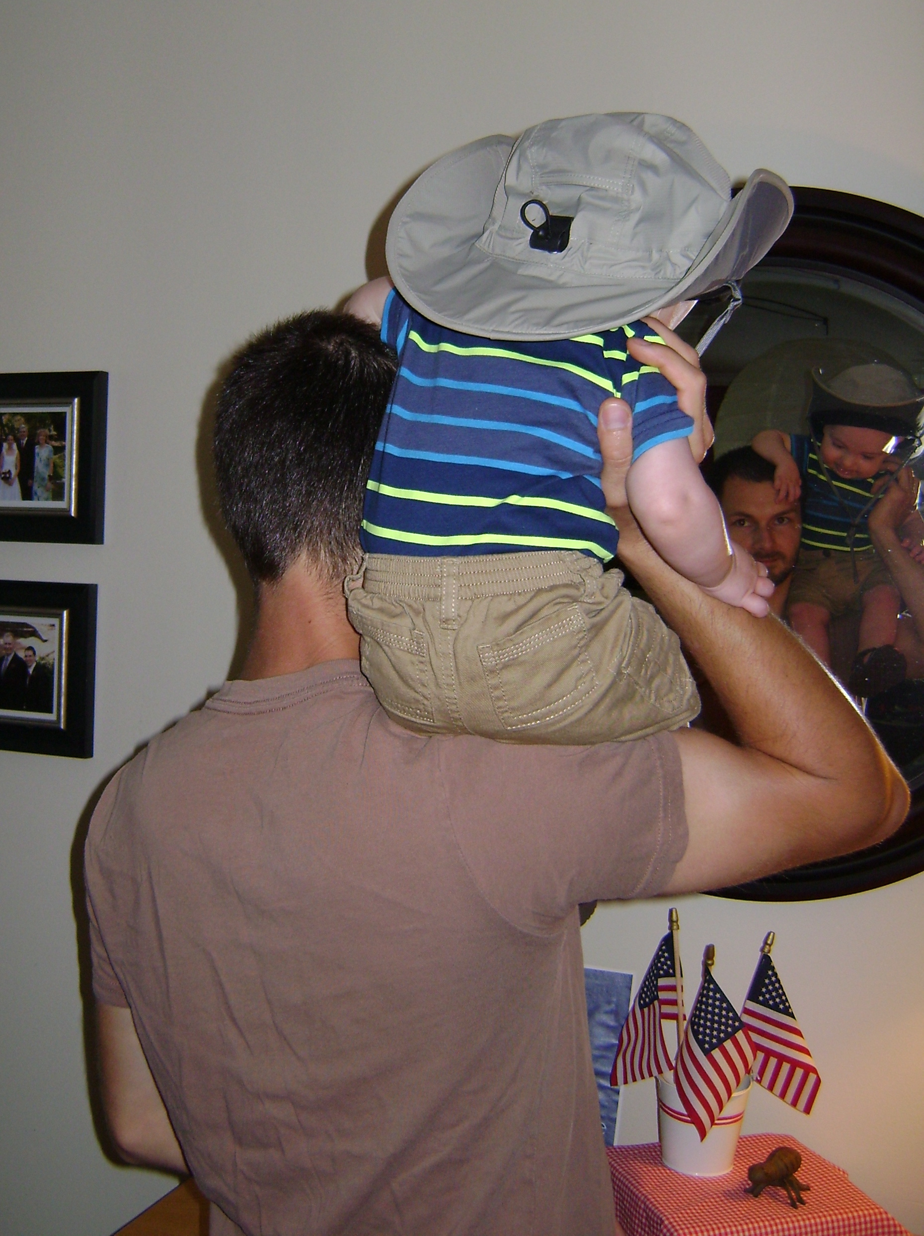 My little guy thought he was big stuff when Dad let him wear his hat!