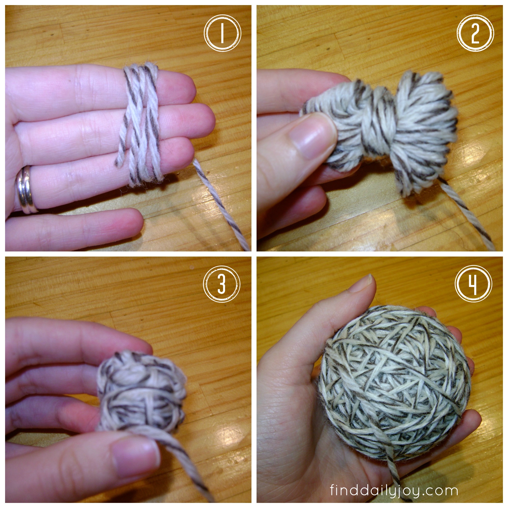 3. Fold the loops of yarn in half to form the core of your ball and start to wrap the yarn around the outside.