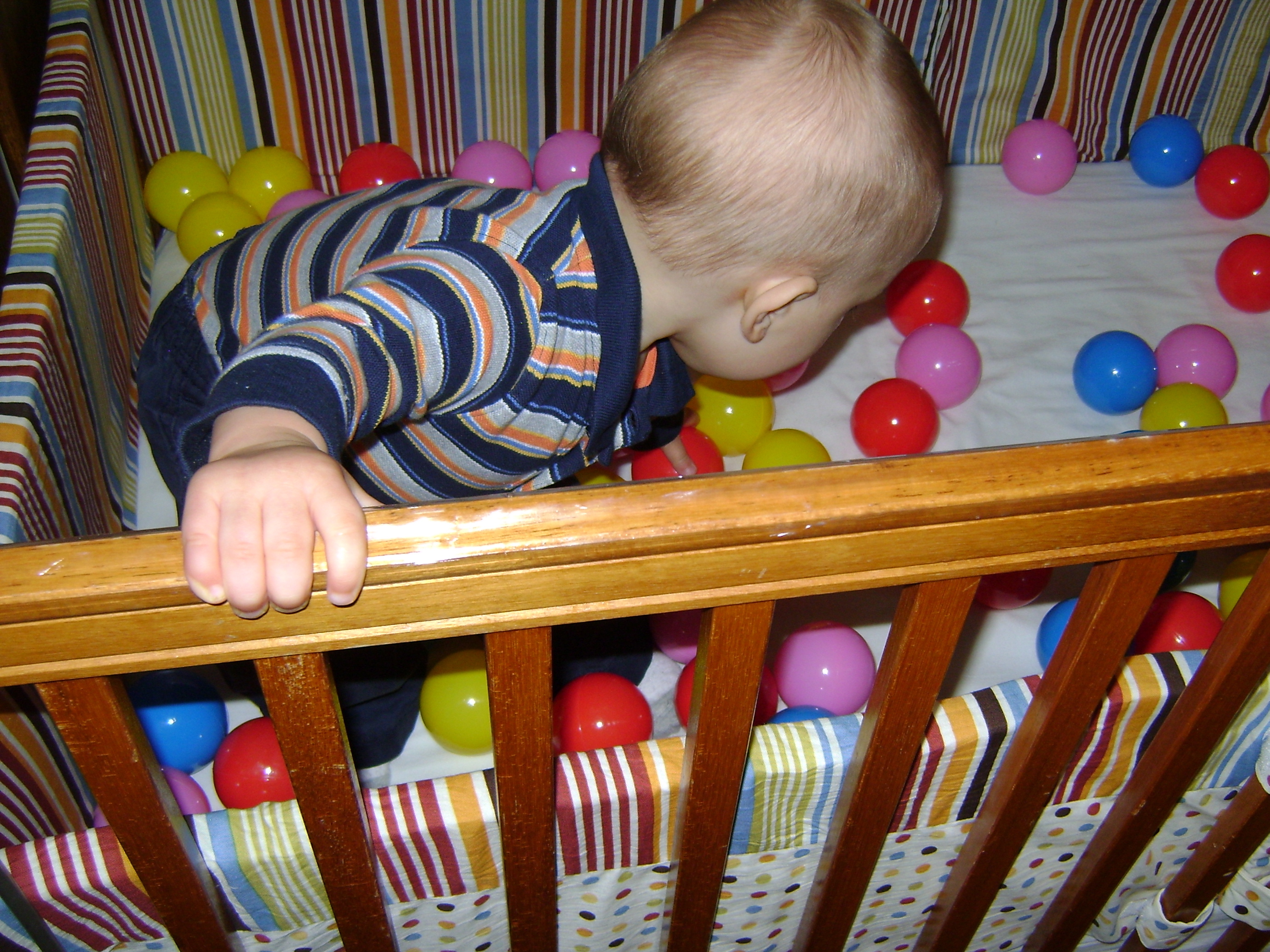 At first he crawled around amongst the balls.