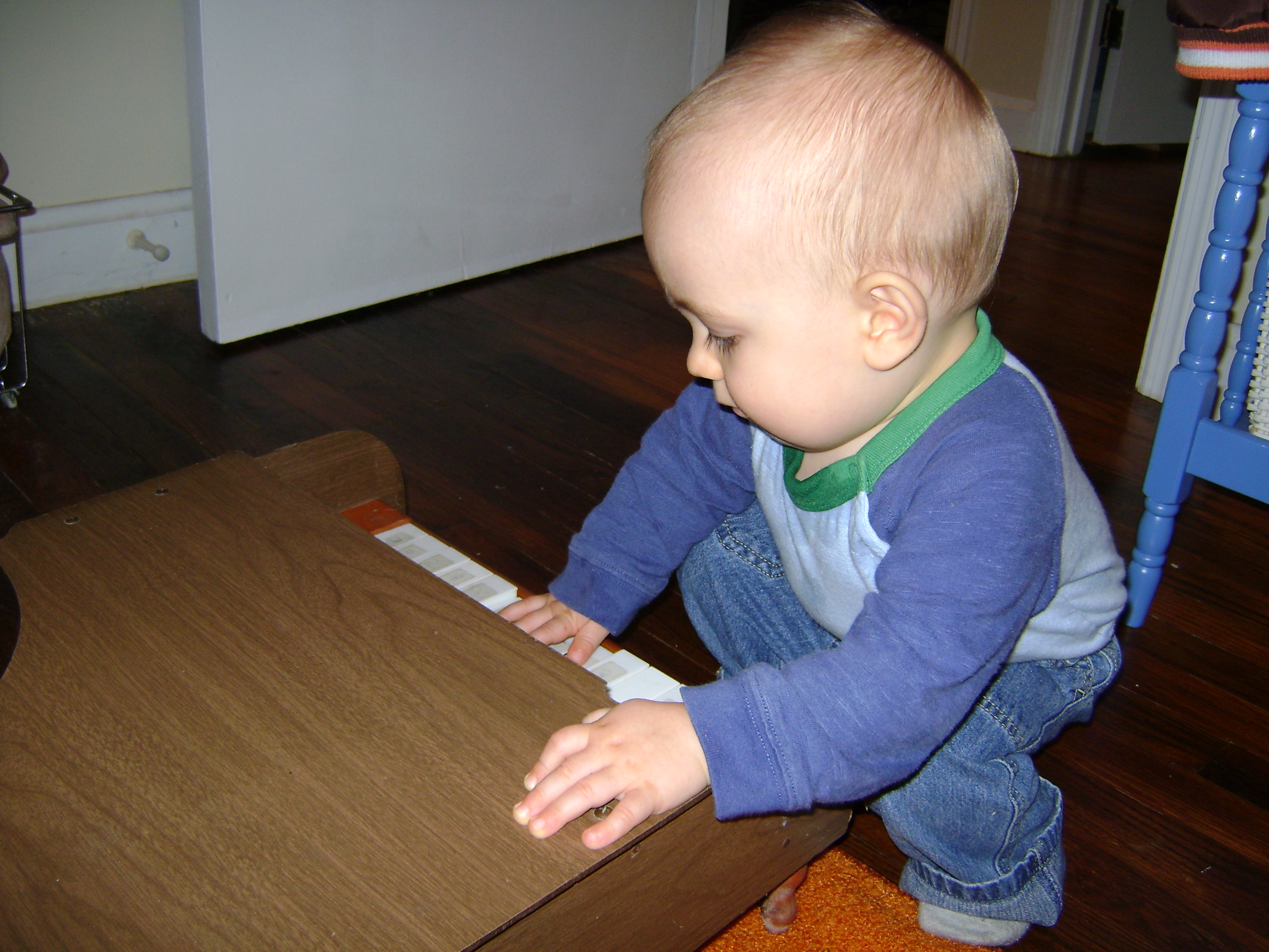 This piano is a toy that I used to play with as a kid and since Henry always tries to climb on top of it I usually keep it put away in the closet. He was pretty eager to with it today.