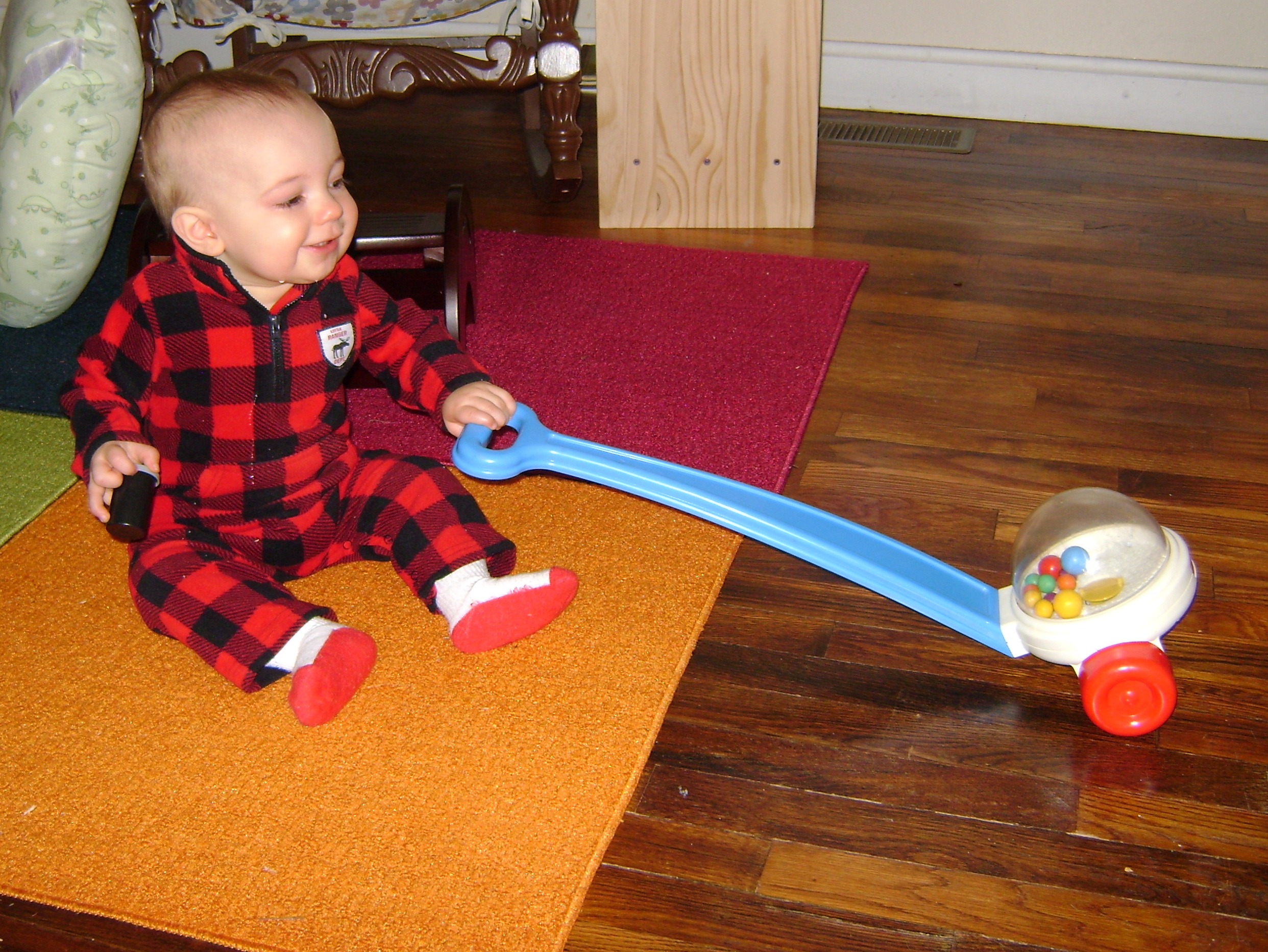 5. Popper toy. Henry thinks it is very entertaining to to push the toy back and forth and watch the balls pop up.