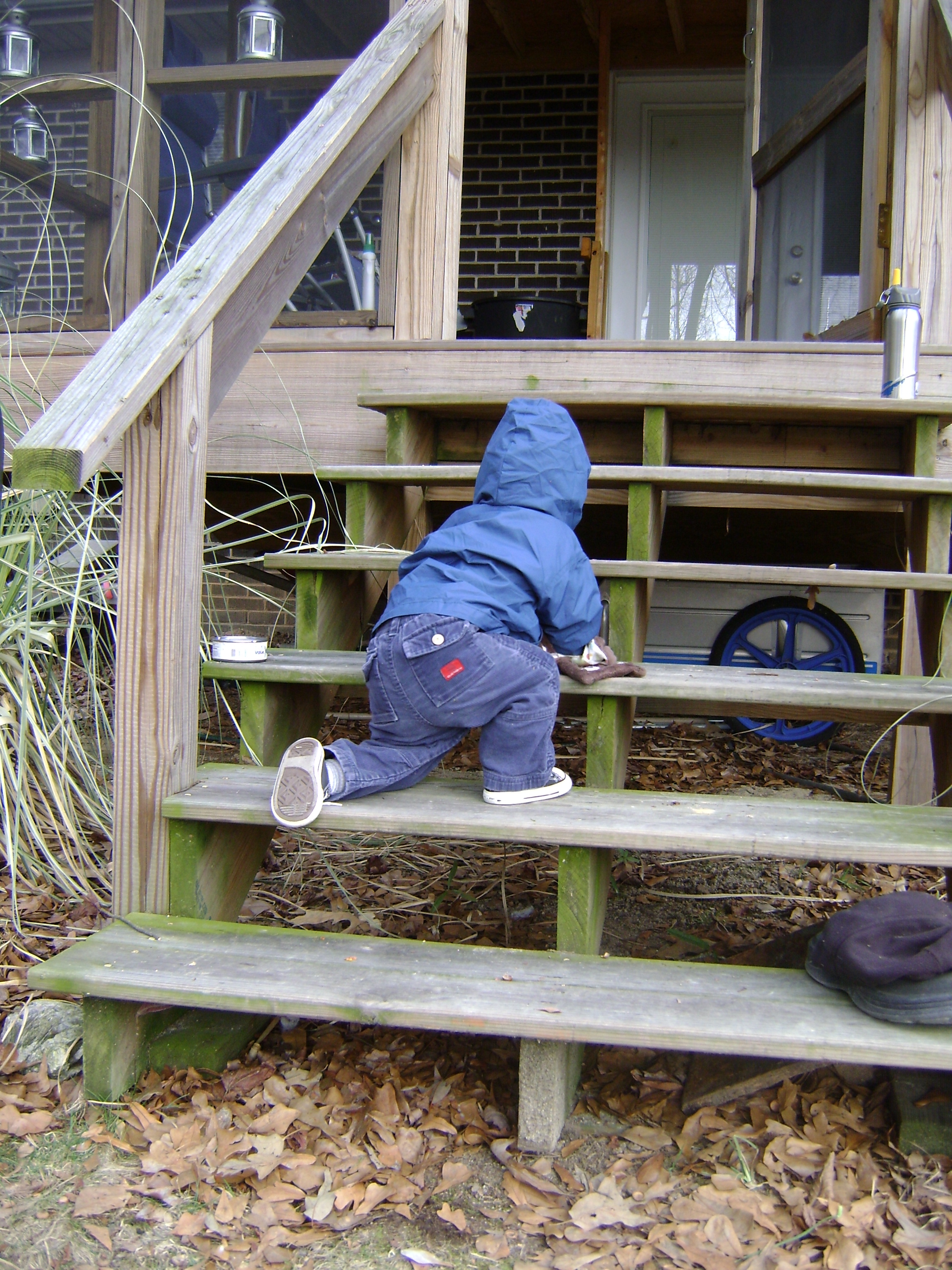 By far, the most exciting thing in the back yard are the steps to the porch.