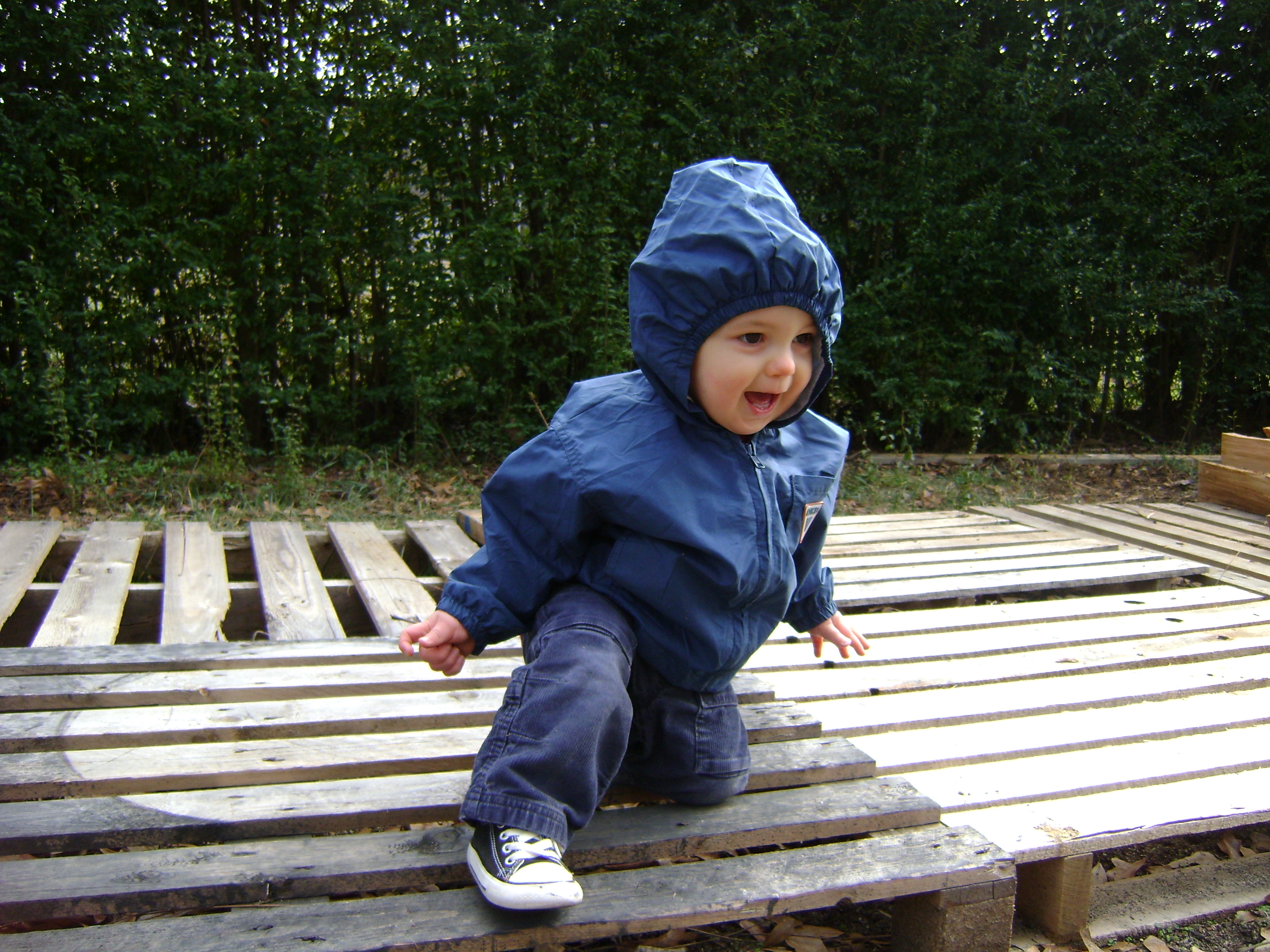 Henry spent a long time crawling and walking all over these things. Maneuvering over the slats of wood without falling through the cracks is probably good for his balance and coordination so I let him explore and tried not to worry about him getting splinters or twisting his ankle. He’ll be sad when Stephen fills up these pallets with firewood.