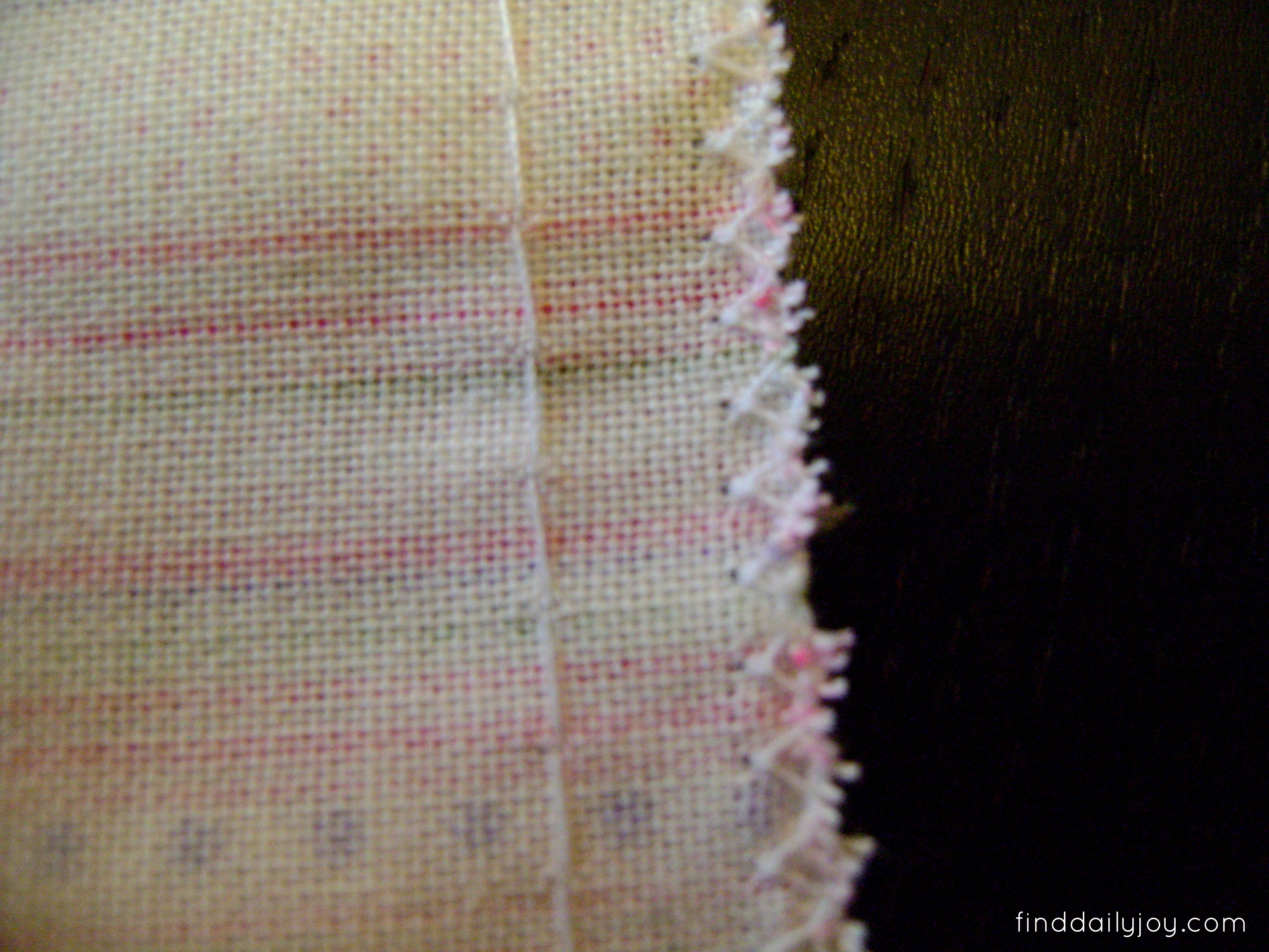 Along one of the widths of the skirt sew a small zig zag stitch near the edge of the fabric.  This seam will be exposed and the zig zag stitch will help keep the fabric from raveling.  Then along that same edge of fabric sew a basting stitch 1/4″ from the edge.  Be sure not to backstitch or tie off the ends of the threads from your basting stitch.