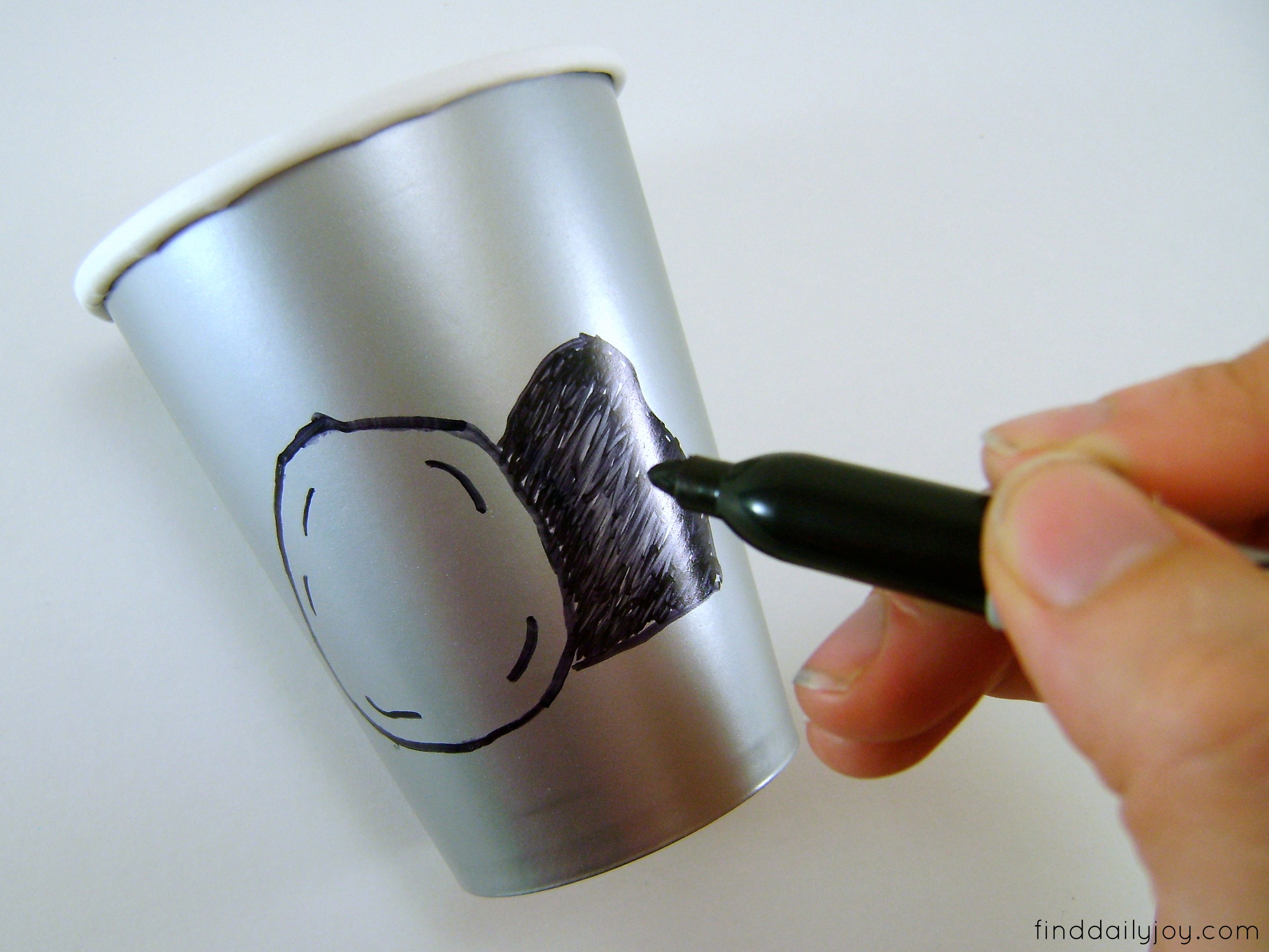 On the outside of your cup draw the stone and opening of the tomb. I used a Sharpie because my cup had a glossy surface.