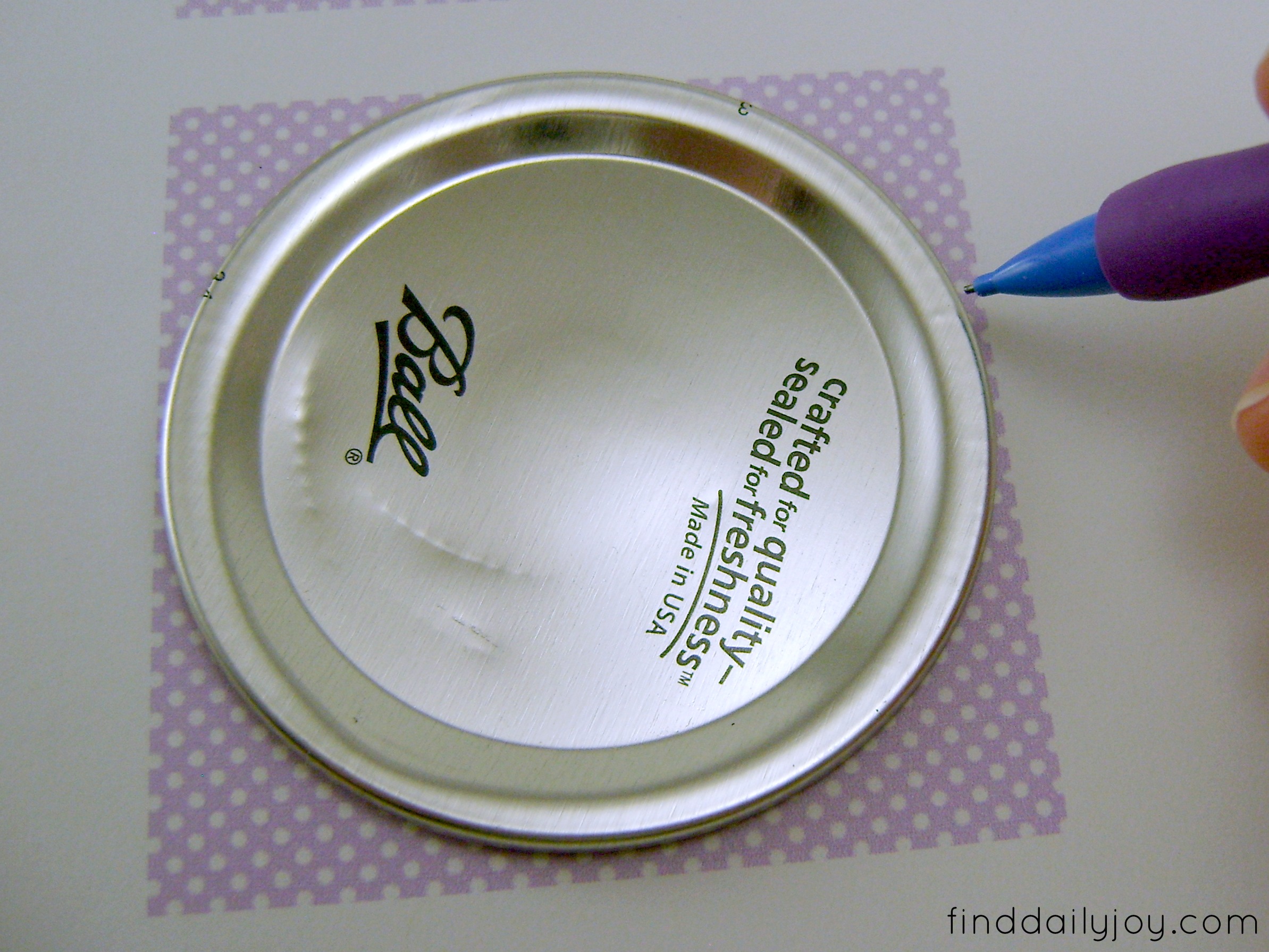 Print off the label on white card stock, then place the lid of your jar over the image and trace around it.