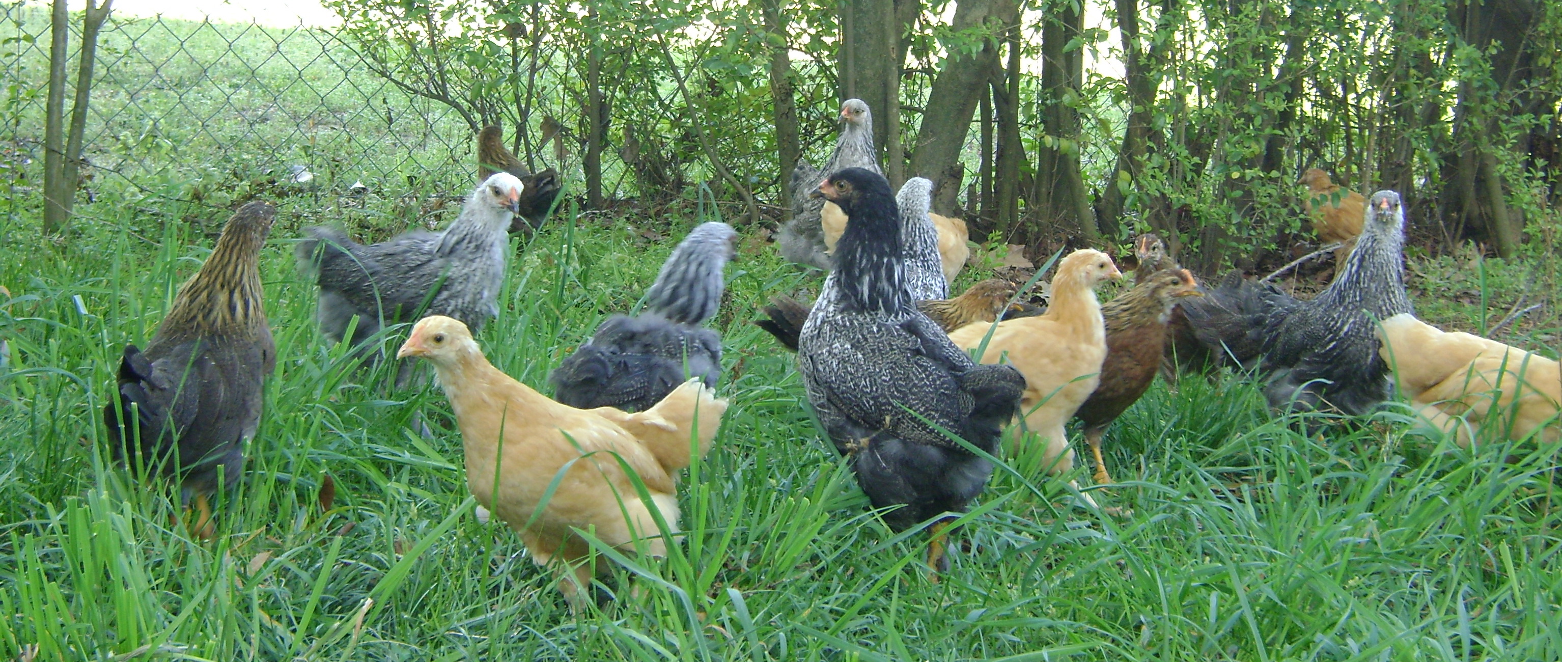 They run around the yard, eat lots of grass and weeds, fly up on top of the compost pile to eat kitchen scraps, hang around the wood piles to eat bugs, scratch in the leaves to find bugs and lay under the bushes in the heat of the day.