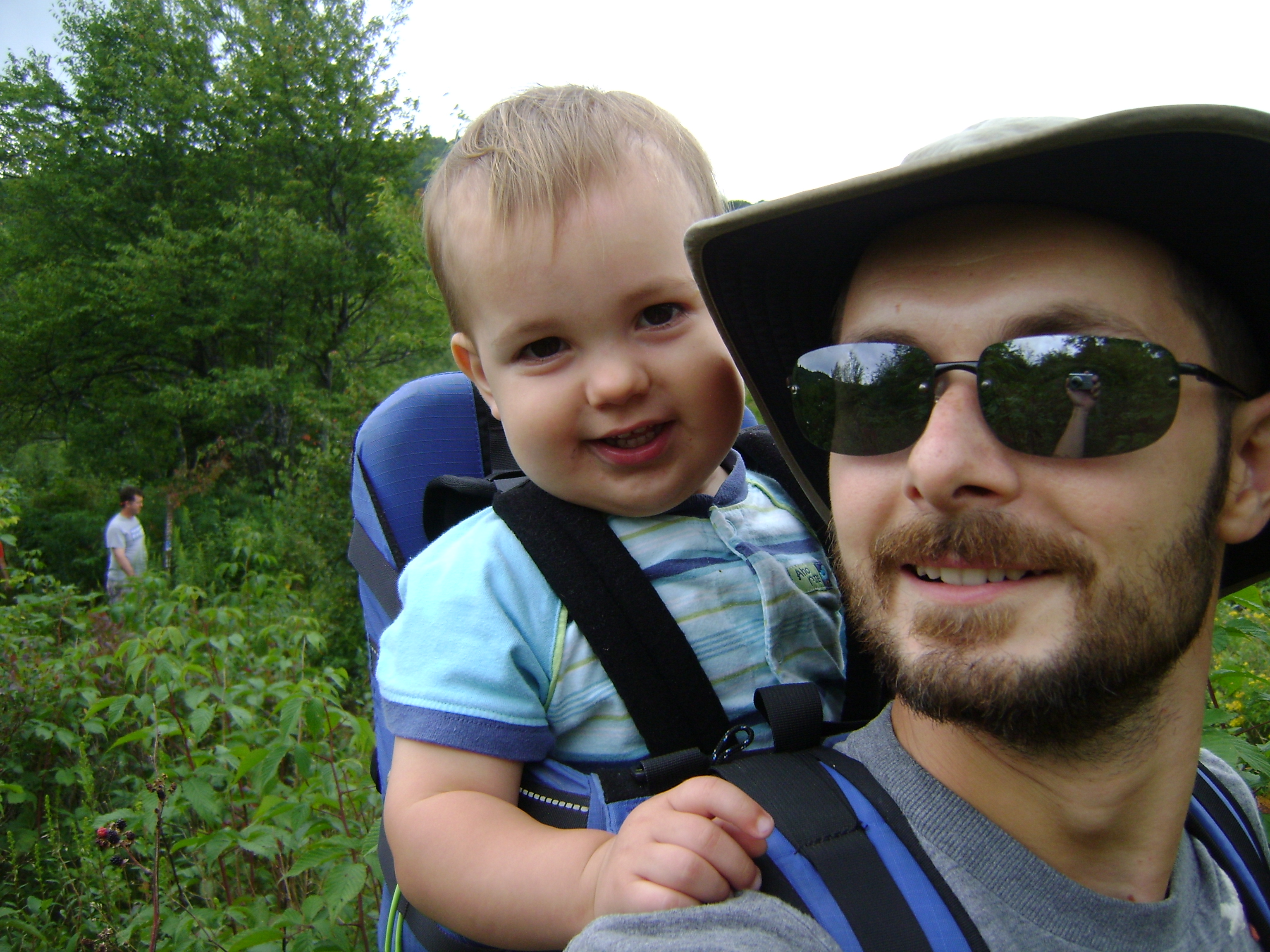 When we went down by the stream we let Henry out of the backpack carrier to stretch his legs and play in the water. He loved splashing around and throwing rocks.