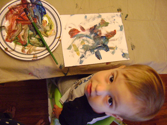 This was Henry’s first time painting with a brush and he worked very diligently to cover the entire area with paint. I loved his look of intense focus as he created his masterpiece.