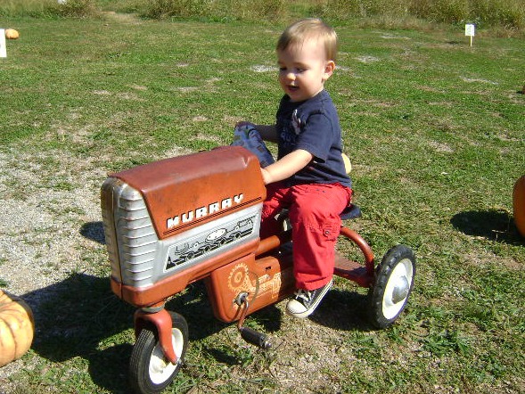 Next up were the farm animals. We walked around to see the lamas, goats, sheep and chickens. Then we went on a hayride and were able to see a donkey, pigs, more goats and fields with fall crops. I think Henry’s favorite were the sheep because they came right up to the fence and ate all of the grass that he picked and feed them.