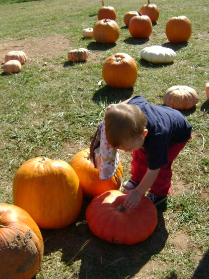 Henry was very excited to show off his pumpkin to Daddy that evening!